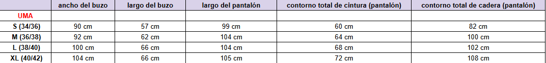 • Incluye buzo + pantalón.