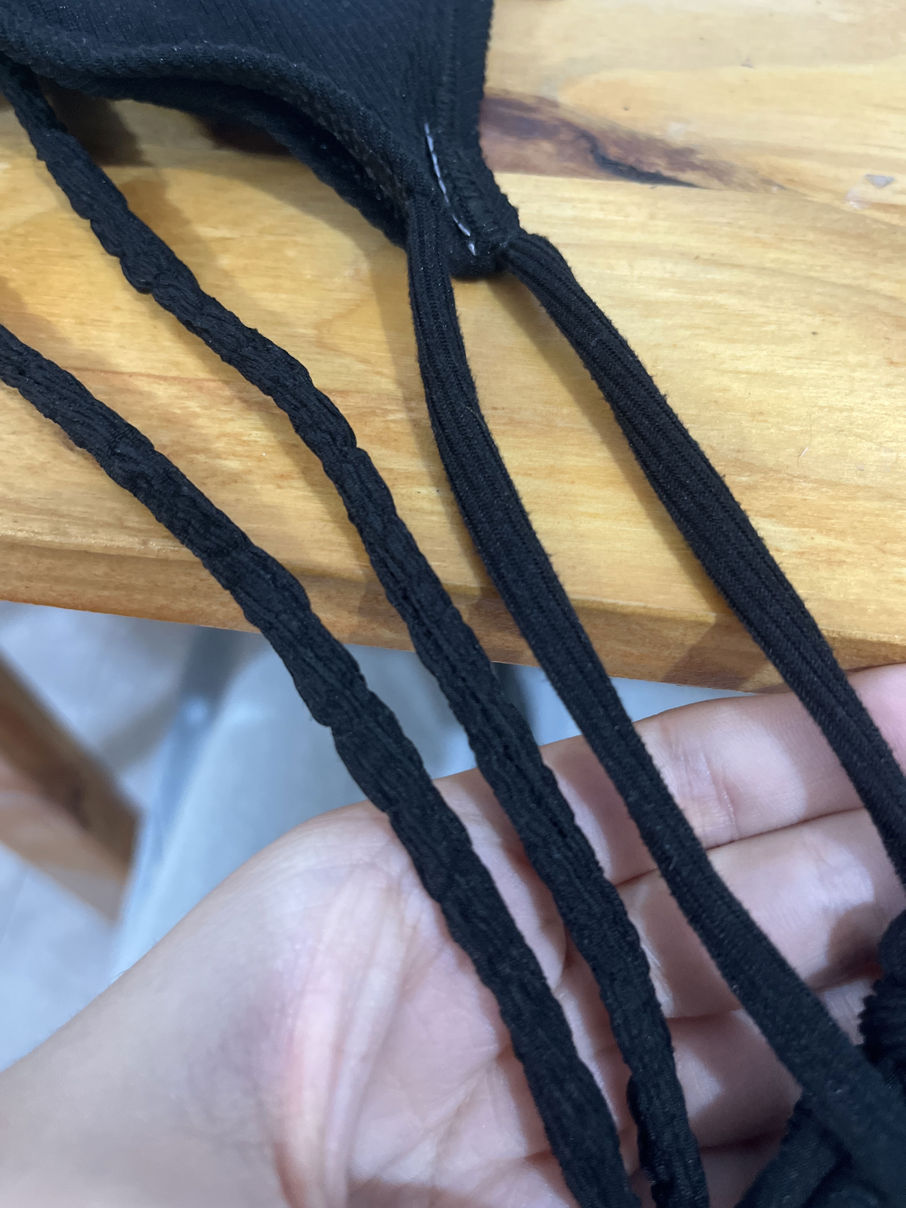 FALLA: las tiras del cuello son de tela texturada y las de la espalda son de otra tela.