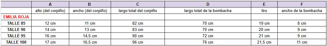 🌺Tabla de talles