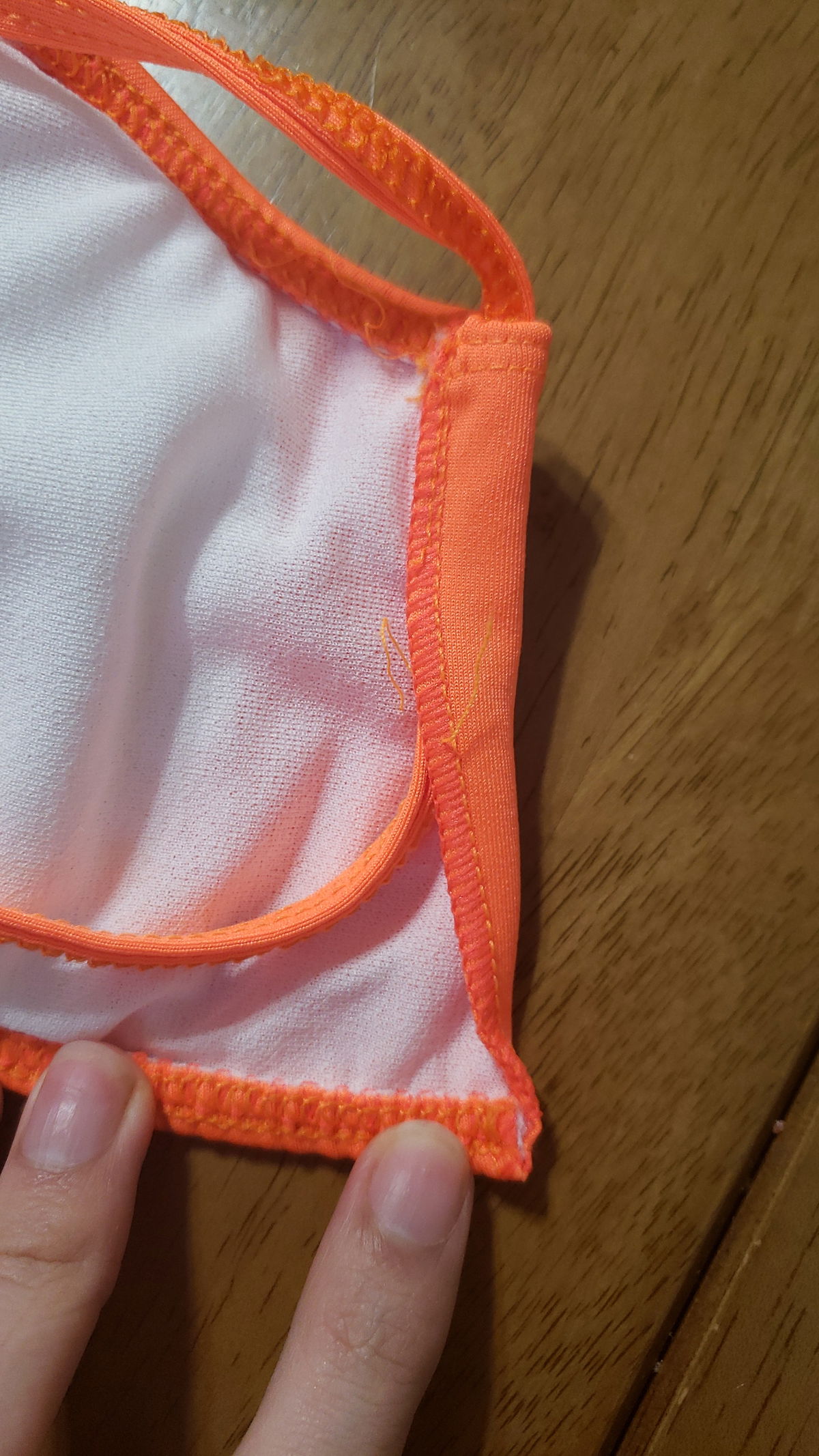 FALLA: el corpiño tiene rayas y no tiene costura en una parte