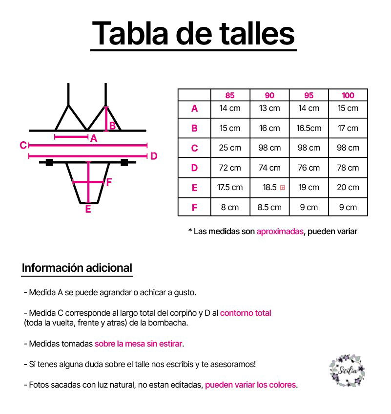 - Incluye bombacha y corpiño.