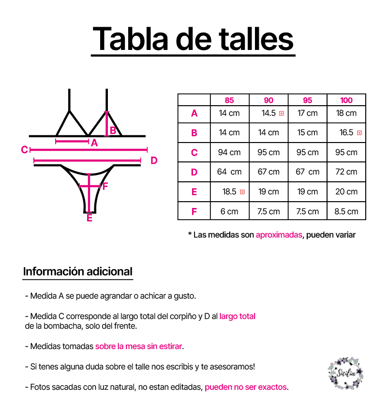 - Incluye bombacha y corpiño.