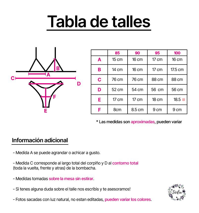 - Incluye bombacha y corpiño.